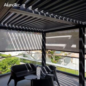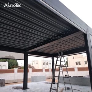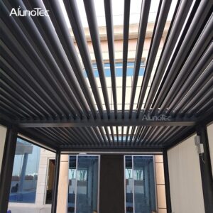 The patio pergola features two standard colors options(white and grey)that compliment almost any architecture. Available in hundreds of custom colours from RAL color chart